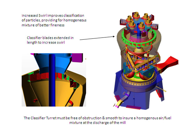 Yanma optimizasyonunda NOx , tane boyutu, hava dağılım oranları ve yanmamış karbon oranları sadece değirmen roller ve seğment değişimi ile sınırlı kalamaz. Bu nedenle dikkatleri statik classifierlara çekmek gerekir. Bu ekipmanlar sadece değirmenden kömür çıkışlarını homojenleştirmekle kalmayıp, iri taneli kömürleri tekrar işlem görmesi için öğütülmenin yapıldığı alana sevk eder.