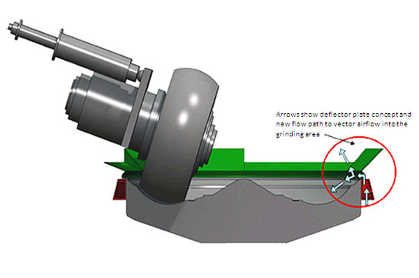 - Deflector, preventing of coal leakage and the conservation of the coal in the grinding part with a particular rotating speed in order to carry the coal particles
